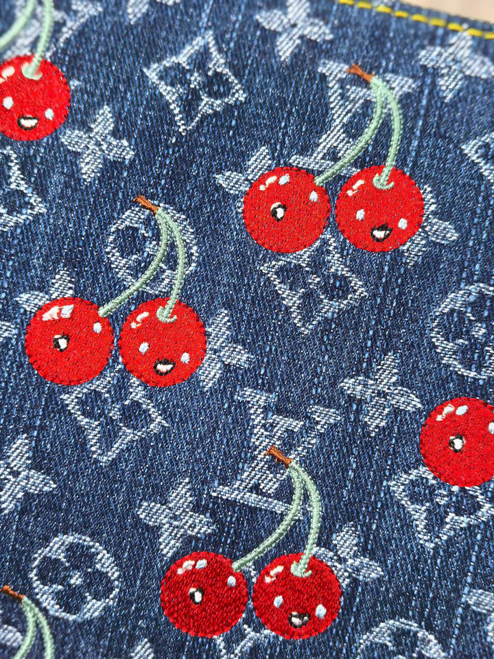 LV 25S COUSSIN BAG 26 IN DARK BLUE DENIM MONOGRAM CHERRY GOLD HARDWARE