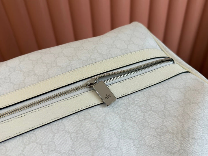MEDIUM DUFFLE BAG WITH WEB 47 IN WHITE SOFT GG CALFSKIN