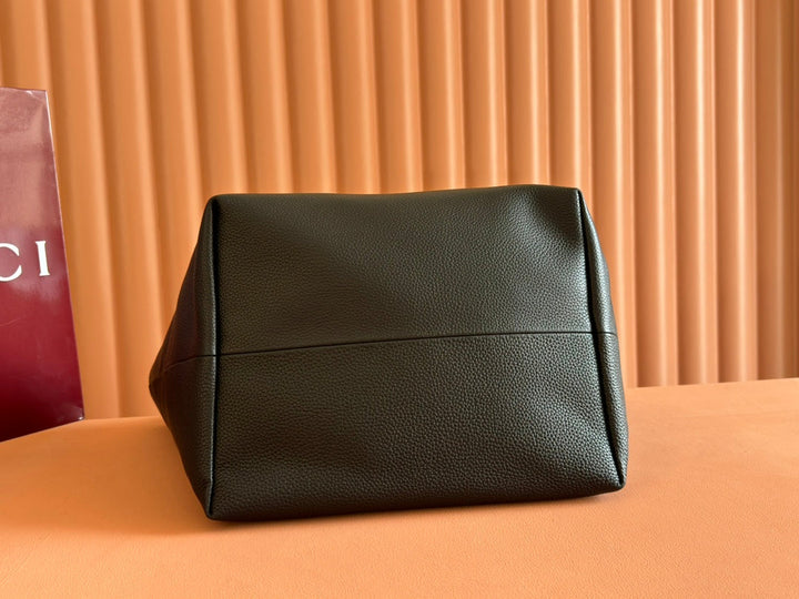 MEDIUM TOTISSIMA REVERSIBLE TOTE BAG 30 IN BLACK CALFSKIN BEIGE AND BROWN GG CANVAS ON SIDE