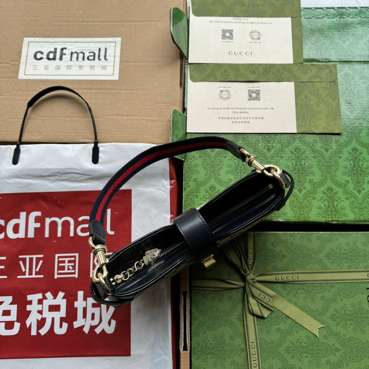 MOON SIDE SHOULDER BAG 24 IN BEIGE CANVAS AND BLACK LEATHER TRIM