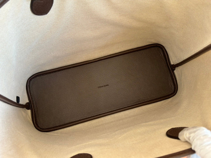 OPHIDIA MEDIUM TOTE BAG 38.5 BEIGE CANVAS AND BROWN CALFSKIN