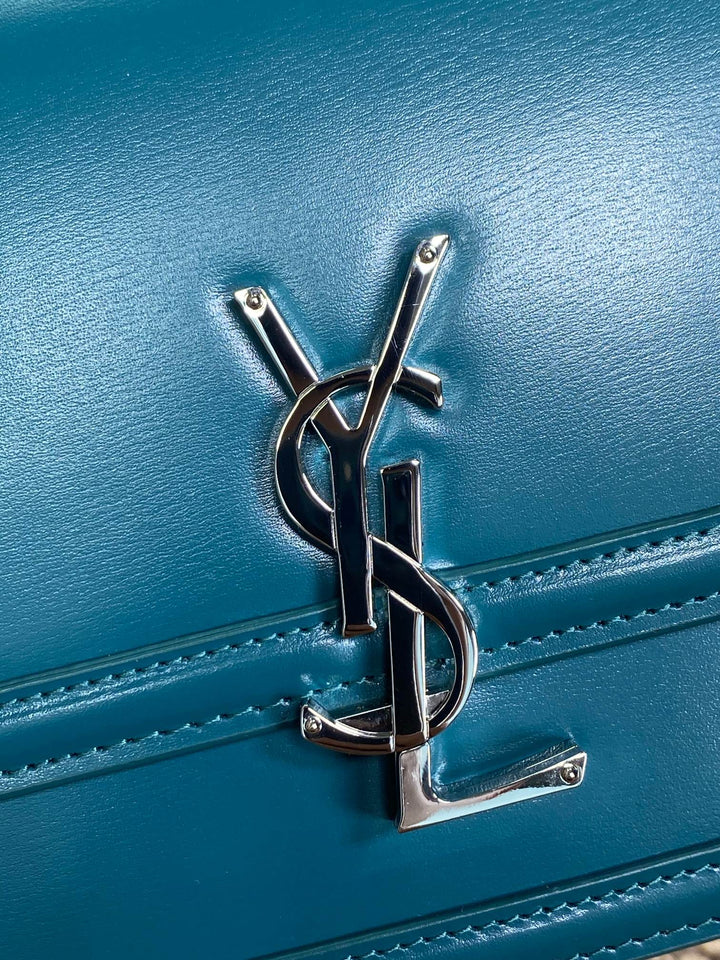 SOLFERINO SMALL SATCHEL 23 IN CERULEAN BLUE CALFSKIN GOLD HARDWARE