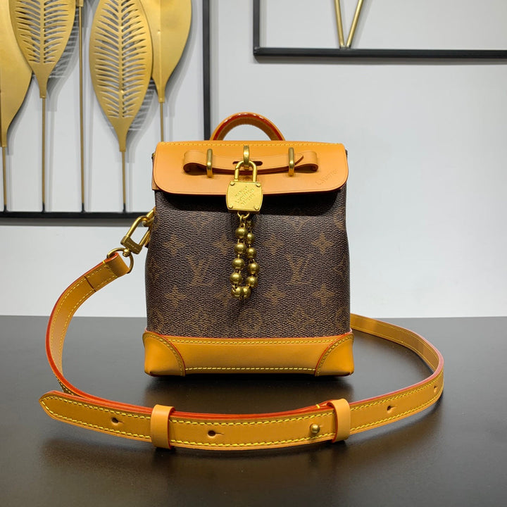 STEAMER 20 IN BROWN MONOGRAM DUST CANVAS AND CALFSKIN TRIM GOLD HARDWARE