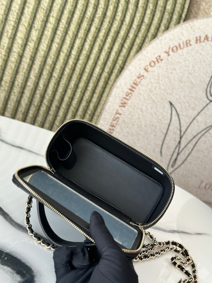 VANITY 17 CAVIAR WITH HANDLE IN BLACK CALFSKIN GOLD HARDWARE