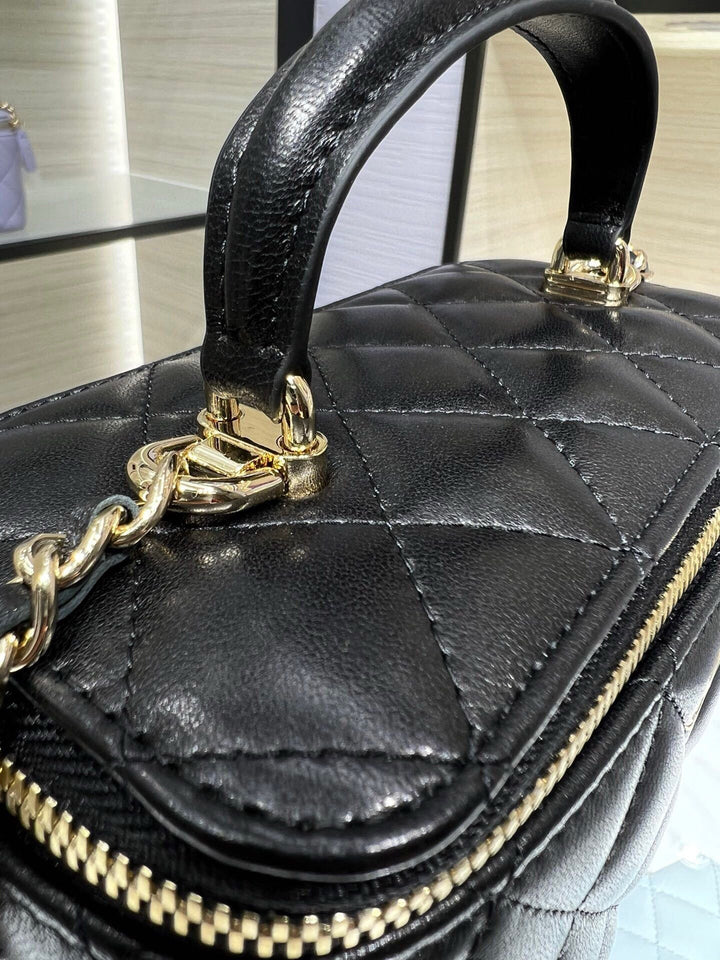 VANITY 17 TOP HANDLE IN BLACK QUILTED LAMBSKIN GOLD HARDWARE