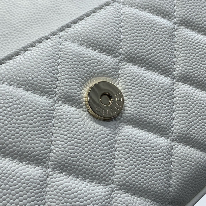23P Flap Bag 19cm White Caviar Gold Hardware