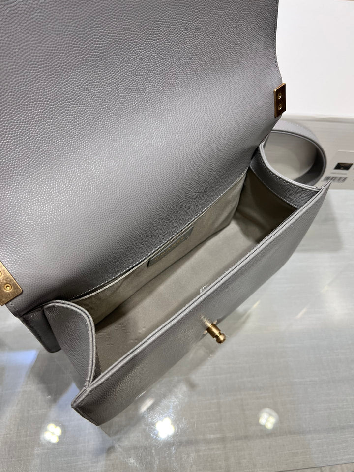 BOY BAG MEDIUM 25 GREY CAVIAR GOLD HARDWARE