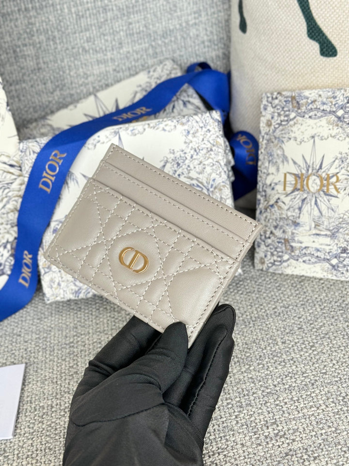 CARO FREESIA CARD HOLDER 10 IN LIGHT GREY CANNAGE CALFSKIN
