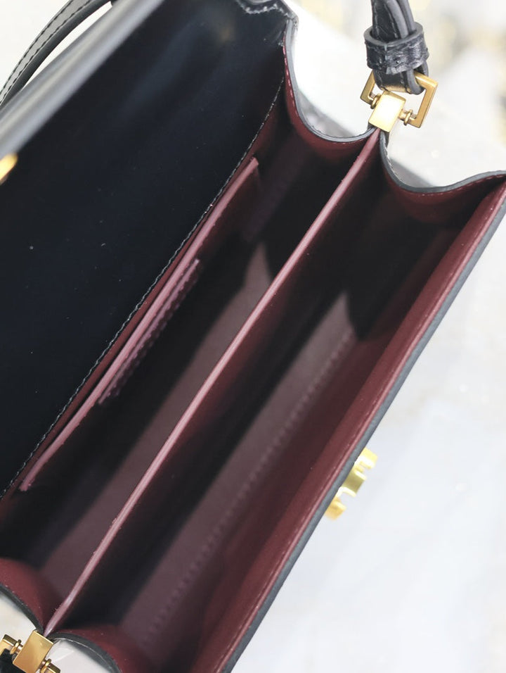 CASSANDRA MINI TOP HANDLE BAG 20 IN BLACK SMOOTH LAMBSKIN GOLD HARDWARE