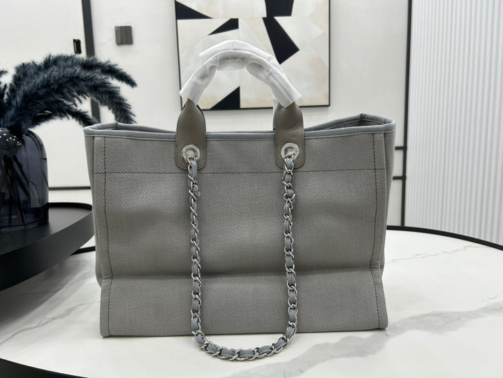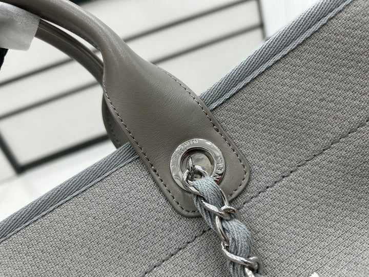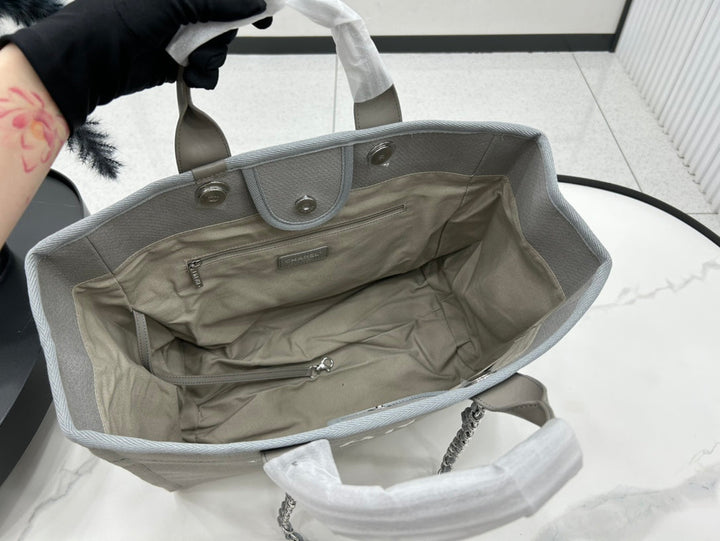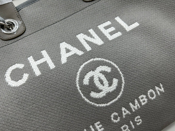 CC DEAUVILLE LARGE 38 TOTE BAG IN GREY CANVAS WITH WHITE LOGO