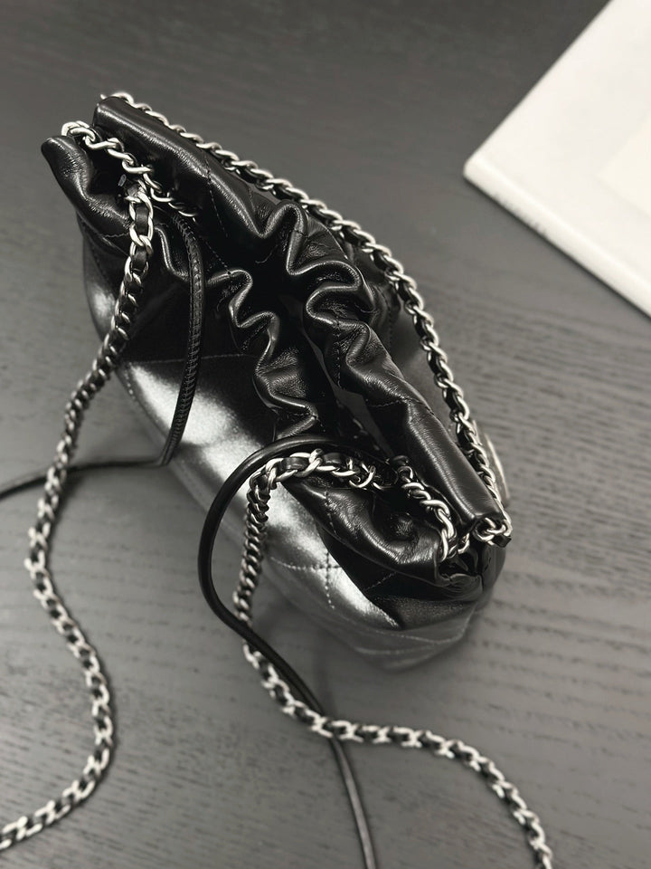 CC HOBO MINI 20CM BLACK GREY LAMBSKIN SILVER HARDWARE