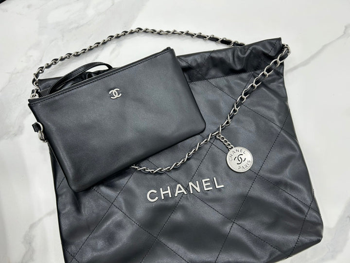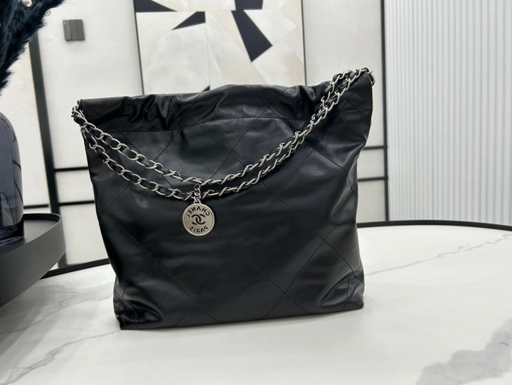 CC MEDIUM 37 HANDBAG IN BLACK CALFSKIN SILVER HARDWARE