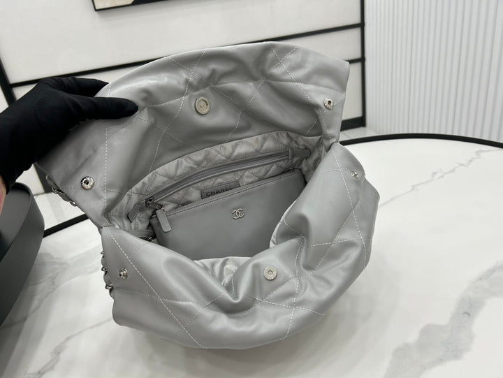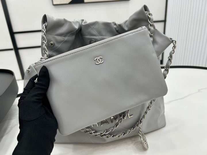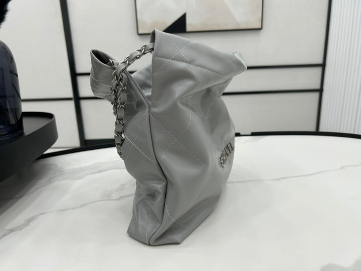 CC MEDIUM 37 HANDBAG IN GREY CALFSKIN SILVER HARDWARE