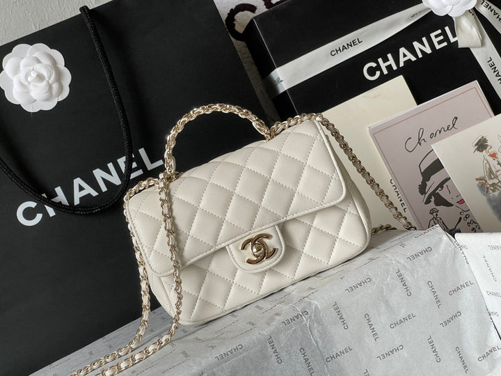 CC MINI 18 FLAP BAG IN WHITE LAMBSKIN