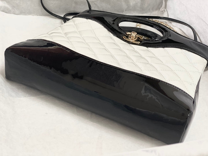 CC MINI 23 SHOPPING BAG IN GLOSSY BLACK MIX WHITE CALFSKIN