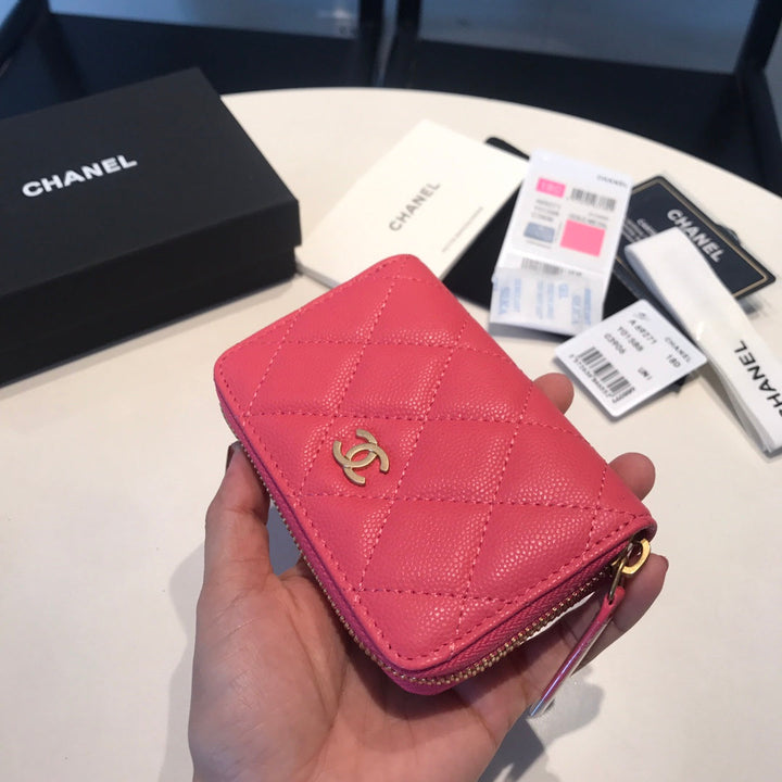 CC ZIPPED COIN BASIC PURSE 11 RED PINK CALFSKIN GOLD ICON