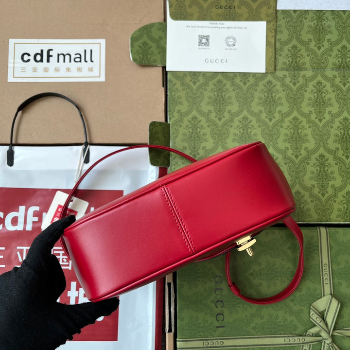 EQUESTRIAN STYLE SHOULDER BAG 21 IN RED MIX BLACK CALFSKIN GOLD HARDWARE