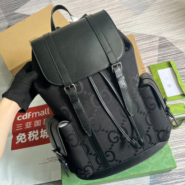 GG OPHIDIA LARGE 42 BACKPACK IN BLACK CANVAS AND CALFSKIN