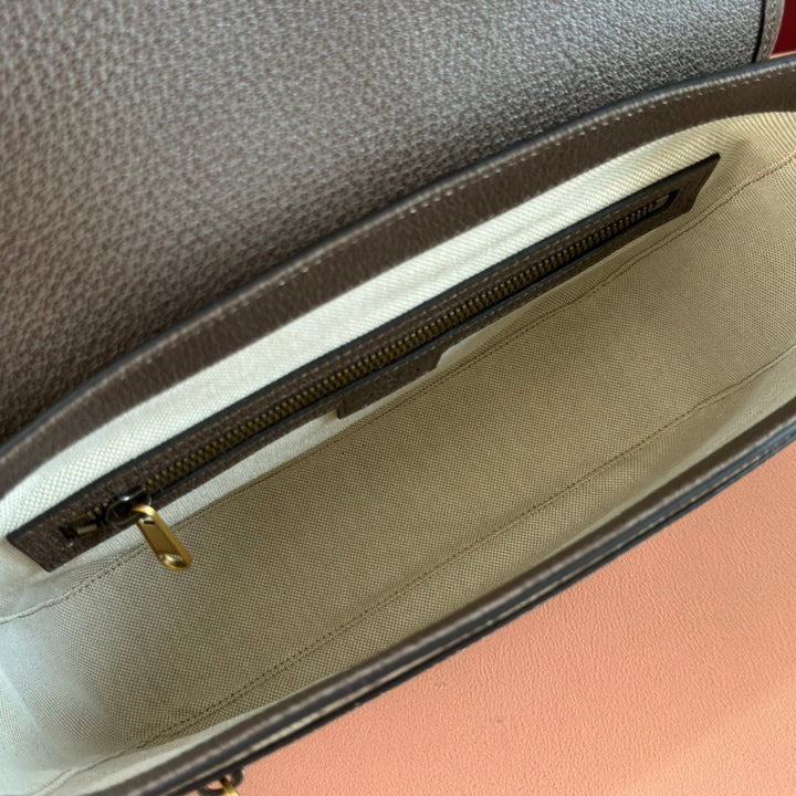 GUCCI 25S OPHIDIA MEDIUM CROSSBODY BAG 28 IN BEIGE CANVAS AND BROWN CALFSKIN