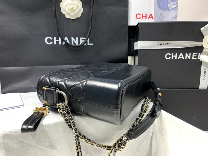 HOBO BAG 25 WITH STRAP IN BLACK CALFSKIN GOLD AND SILVER HARDWARE