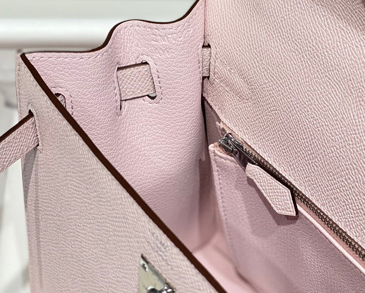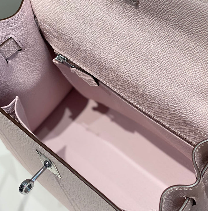 KELLY 25CM IN EPSOM MAUVE SWIFT CALFSKIN SILVER HARDWARE