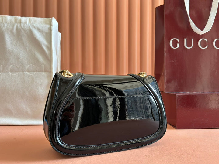 MEDIUM BLONDIE SHOULDER BAG 26.5 IN BLACK PATENT CALFSKIN