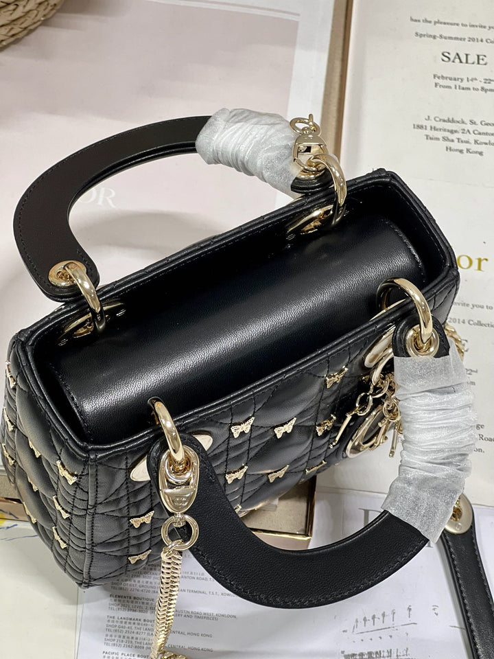 MINI LADY 17 BUTTERFLY STUD BLACK LAMBSKIN