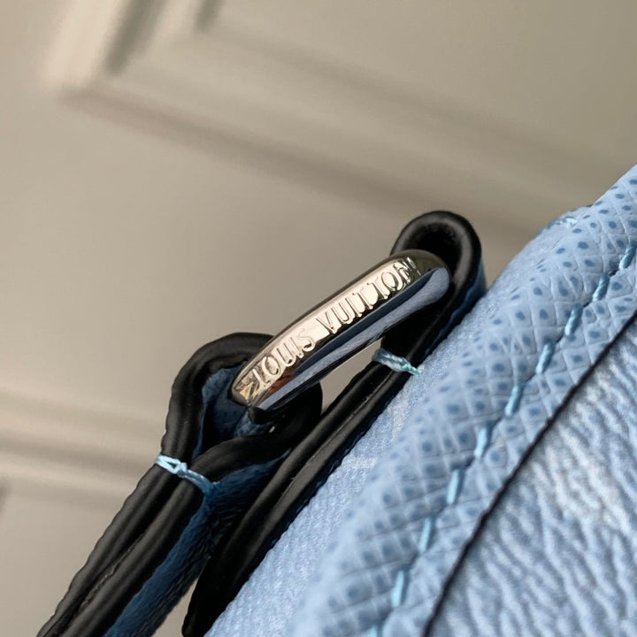 PULSE MESSENGER 22.5 IN BLUE MONOGRAM COATED CANVAS AND CALFSKIN