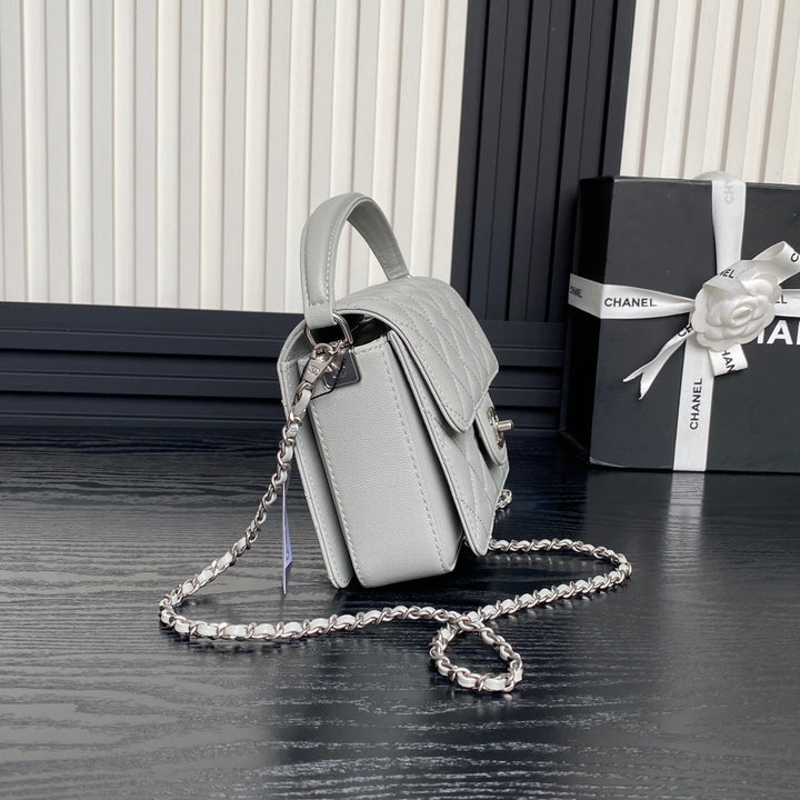 RETRO STYLE FLAP BAG 19 IN RHINO GRAY GRAINED CALFSKIN GOLD HARDWARE