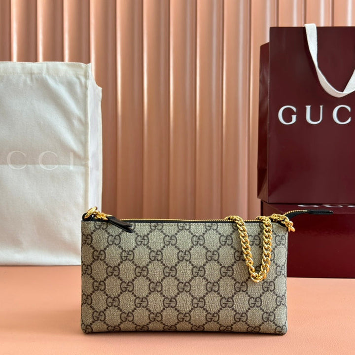 RUBBER EFFECT SMALL WALLET ON CHAIN 22.5 IN BEIGE AND DARK BROWN GG CALFSKIN