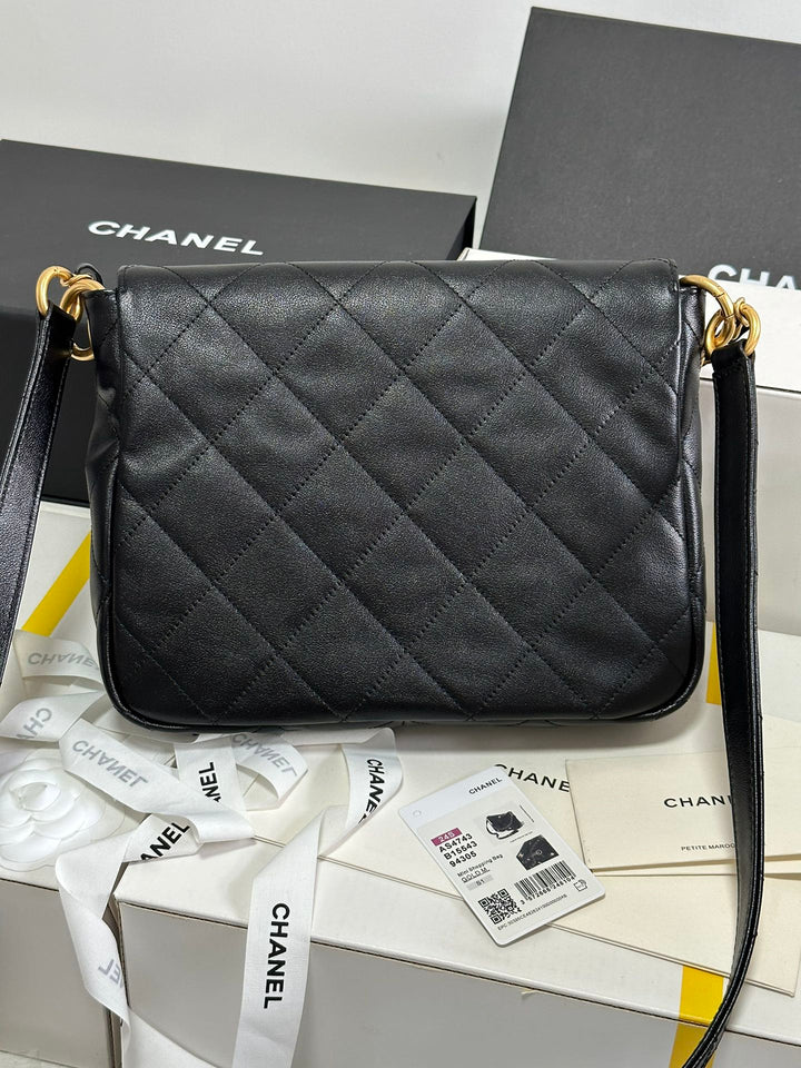 SMALL HIPPIE HOBO POSTMAN BAG 25 IN BLACK CALFSKIN GOLD HARDWARE